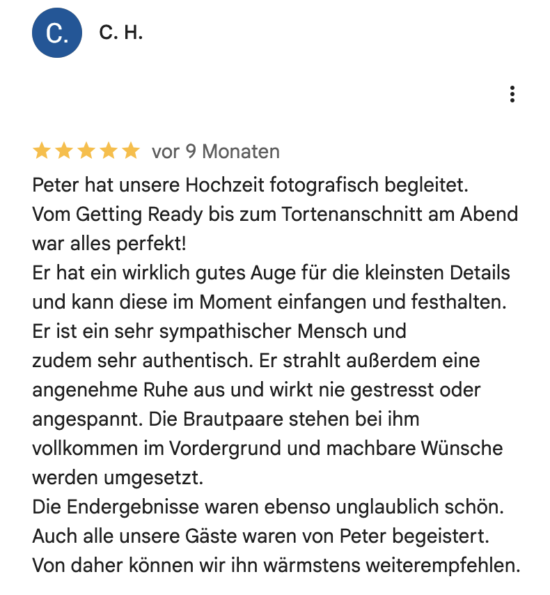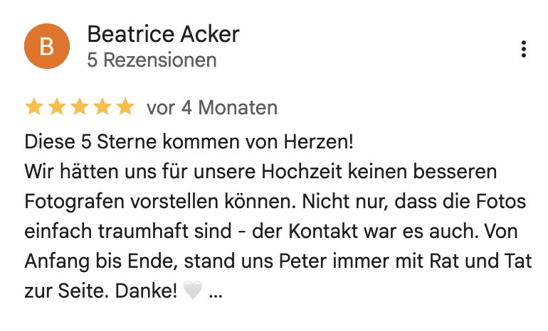 Nicht, weil mehr nicht möglich wäre – sondern um jeder Hochzeit meine volle Aufmerksamkeit und Zeit zu schenken. Zeit für euch, für eure Geschichte und für die Momente, die euren Tag wirklich ausmachen.
